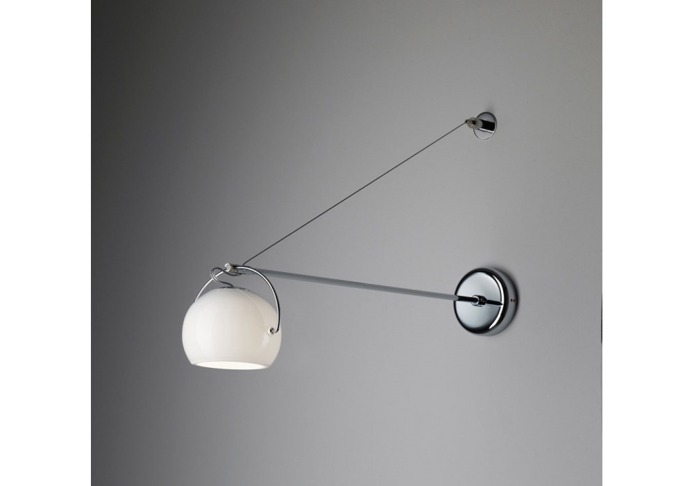 Beluga White D57 von Marc Sadler für Fabbian entworfen ist eine schöne Wandleuchte mit poliert verchromt Struktur. Verstellbare poliert weiß Diffusor aus mundgeblasenem Glas. Schutz Index IP 20.