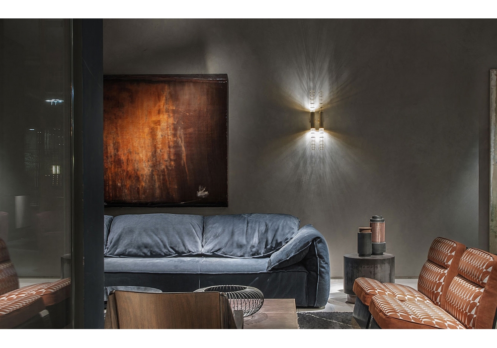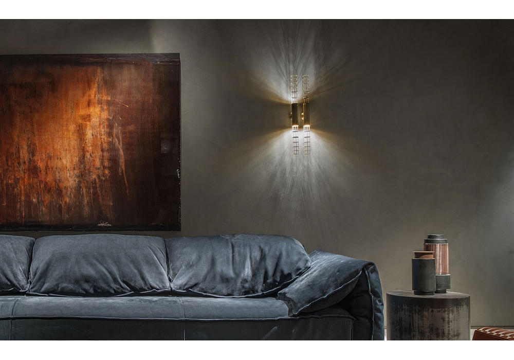 Hubble Palomar von Pietro Russo für Baxter entworfen, ist ein Wandleuchte mit LED-Lichtquelle und Laser-Schnittstruktur aus satiniertem Messing.
