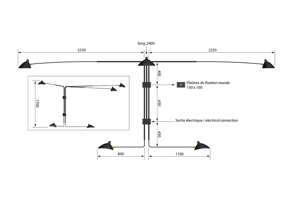 AP5B von Serge Mouille entworfen, ist eine wandleuchte, die das alte model aus 1954 neu aufstellt. Lampe: E27 5x42W alogene (inklusive).