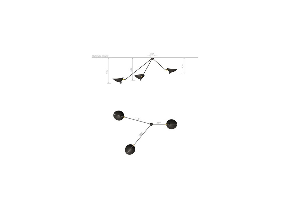 Spider von Serge Mouille entworfen, ist eine wandleuchte, die das alte model aus 1955 neu aufstellt. Lampe: E27 3x42W alogene (inklusive).