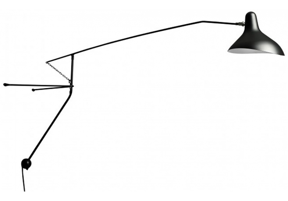 Mantis BS2 von Bernard Schottlander für DCW Éditions entworfen, ist eine Wandleuchte mit Rahmen aus Stahl und Aluminium-Schirm.