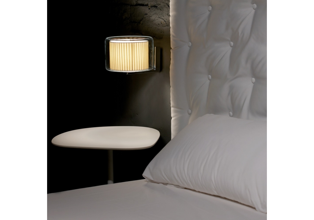 Mercer von Javier M. Borrás & Joan Gaspar für Marset entworfen, ist eine Wandleuchte mit Wandhalterung aus verchromtes Eisen. Der Lampenschrim ist aus Stoff und befindet sich in einer interne Struktur aus durchsichtigen mundgeblasenen Glas. Auch verfügbar in 2 verschiedenen Ausführungen.