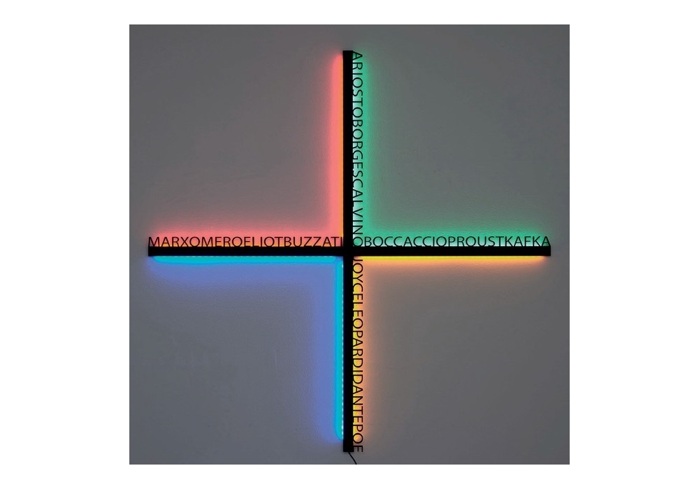 Hsiang entworfen von Mimmo Paladino für Artemide ist eine "Atmosphärenlampe“ mit grünem, rotem, gelbem und blauem emotionalem Licht, vier Lichtstrahlen, die von zwei sich kreuzenden Armen projizieren und eine Kreuzkomposition bilden. Als Lichtquelle kommt ein integrierter LED-Typ zum Einsatz.