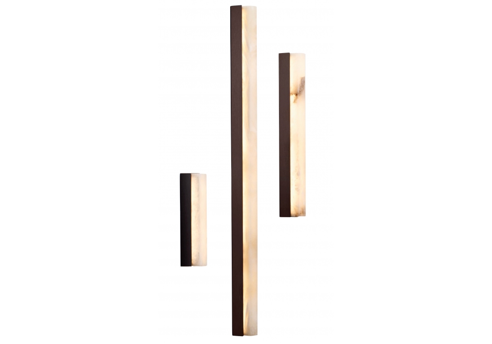 Artés von CTO Lighting entworfen, ist eine LED-Wandleuchte aus Bronze mit Details aus satiniertem Messing oder ganz aus satiniertem Messing und Lampenschirm aus geschliffenem Alabaster. Verfügbar in mehreren Abmessungen.