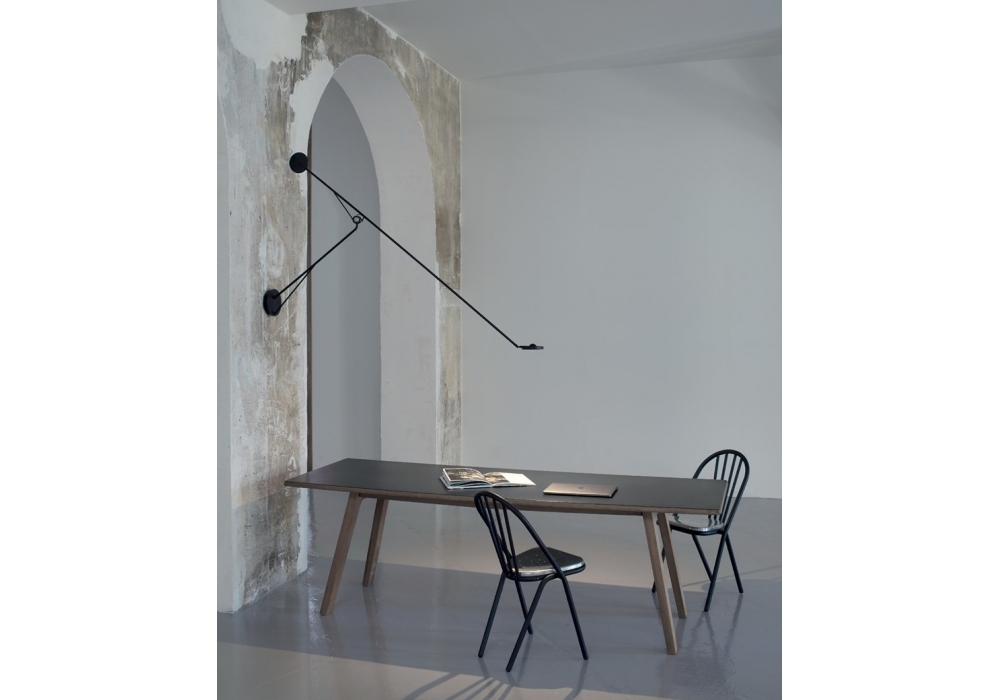 Aaro von Simon Schmitz für DCW Éditions entworfen, ist eine Wandleuchte mit Rahmen aus eloxiertem Aluminium und Stahl, schwarz lackiert.