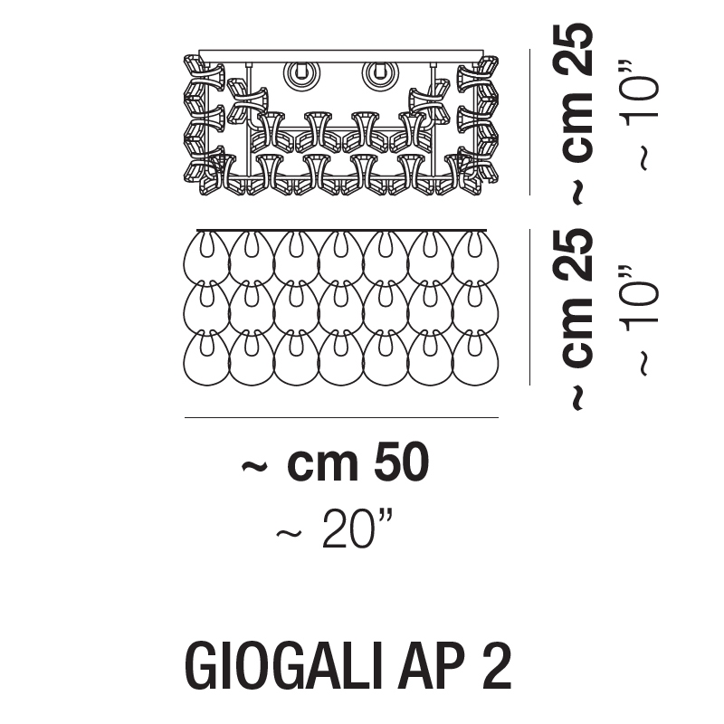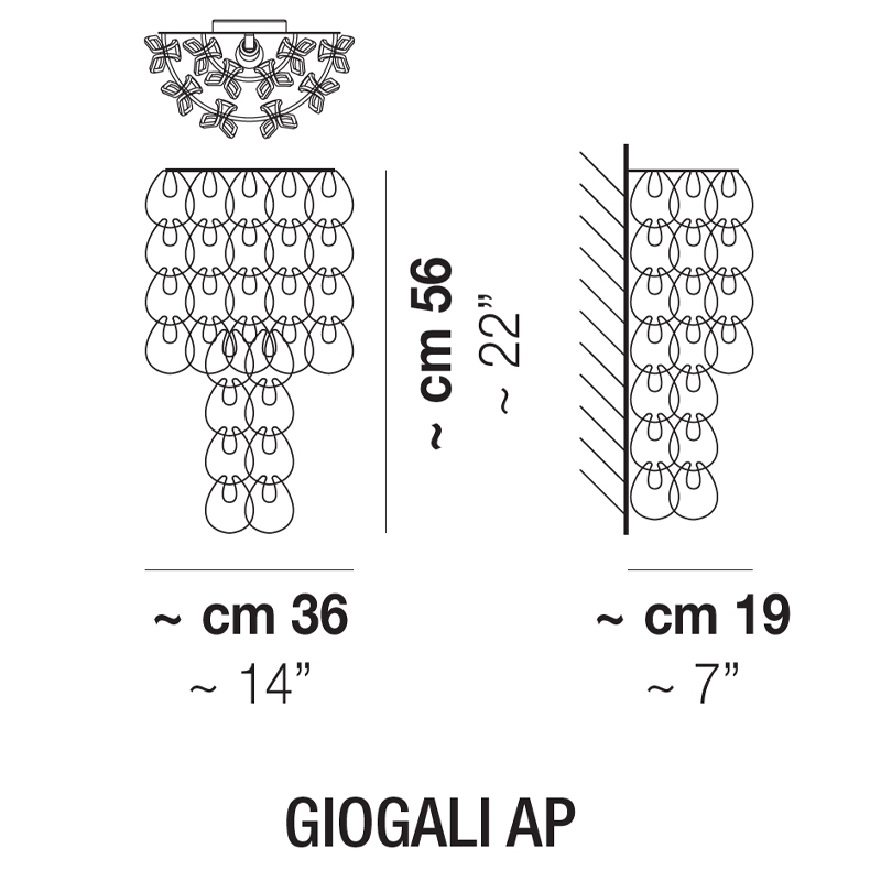 Giogali von Angelo Mangiarotti für Vistosi entworfen ist eine Wandleuchte mit tragender Struktur aus bronze- oder chromfarbenem Metall. Der Teil des Diffusors ist mit mehreren Kristallringen verziert und schirmt eine dimmbare LED- oder Halogenlichtquelle mit E14- oder E27-Fassung ab. Giogali ist in verschiedenen Modellen und Ausführungen erhältlich.
