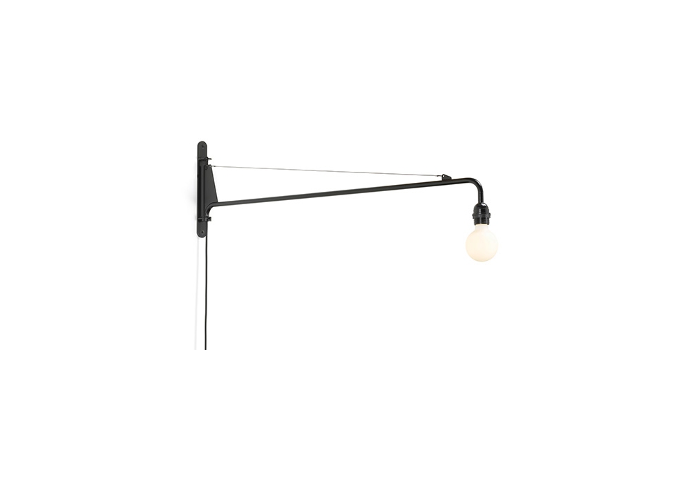 Petite Potence von Jean Prouvé für Vitra ist eine Wandleuchte. Die Petite Potence-Lampe ist auf ihre wesentlichen Bestandteile reduziert - eine Glühbirne und eine Wandhalterung - und kann durch Ausrichten des Schwenkarms bewegt werden. Petite Potence ist 104 cm lang und hat Proportionen, die der großen Potence-Wandleuchte entsprechen. Pulverbeschichtetes Stahlrohr in zwei Ausführungen erhältlich, Dimmer, 1 Lampe enthalten. 220-240 V, 50/60 Hz, Stecker Typ C.
