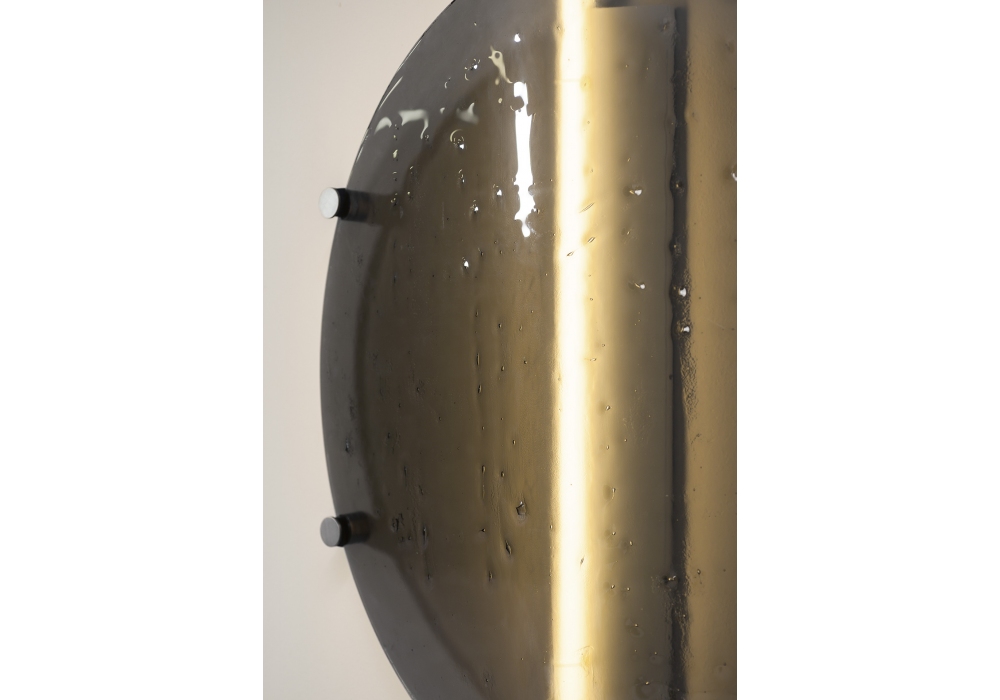 Nanda von Studiopepe für Baxter entworfen, ist eine Neon-Wandleuchte mit einer Struktur aus brüniertem Metall mit matter Farbe. Lampenschirm aus geschmolzenem Glas. Warm Tone Weißlichtquelle.