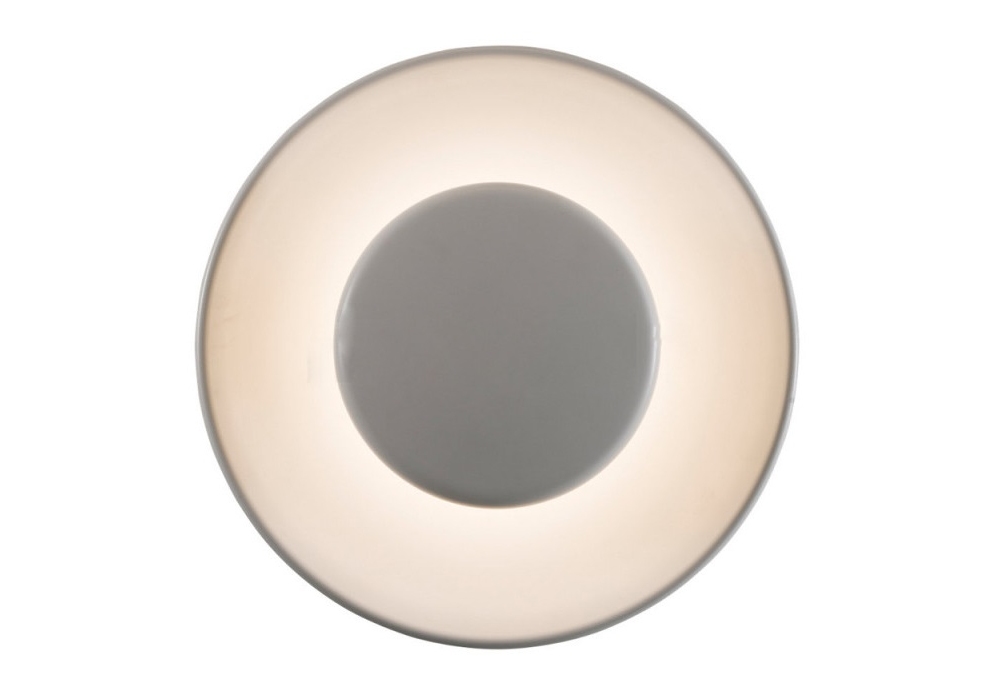 Luna Nera, von Marc Sadler für Martinelli Luce entworfen, ist eine runde Wand- oder Deckenleuchte, die vollständig aus weiß lackiertem Aluminium besteht. Die verwendete Lichtquelle ist vom LED-Typ.