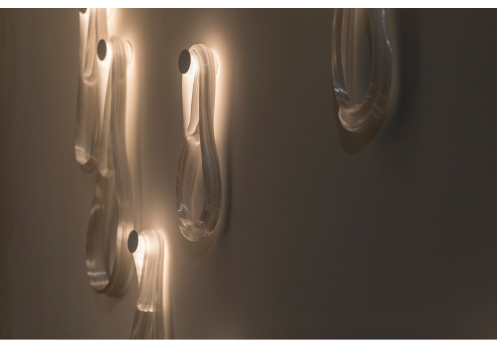 87 von Omer Arbel für Bocci entworfen, ist eine Wandleuchte mit handgefertigtem Glasdiffusor und LED- oder Xenon-Lichtquelle. Der strukturelle Träger ist aus Metall in zwei verschiedenen Ausführungen erhältlich: Weiß und Messing. 87 ist in zwei verschiedenen Versionen erhältlich 87s und 87 sp. der 87s wird nicht direkt an das Stromnetz angeschlossen, sondern über ein Netzteil; während der 87sp über ein integriertes Netzteil verfügt und direkt an das Stromnetz angeschlossen werden kann.