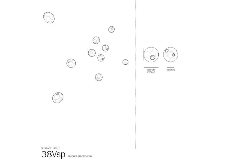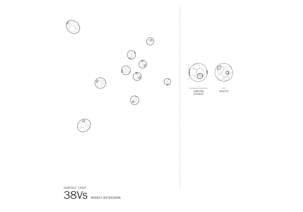 38 von Omer Arbel für Bocci entworfen, ist eine Wandleuchte mit handgefertigtem Glasdiffusor und LED- oder Xenon-Lichtquelle. Die strukturelle Stütze besteht aus Metall. 38 ist in zwei verschiedenen Ausführungen erhältlich 38s und 38 sp. der 38s wird nicht direkt an das Stromnetz angeschlossen, sondern über ein Netzteil; während der 38sp über ein integriertes Netzteil verfügt und direkt an das Stromnetz angeschlossen werden kann.