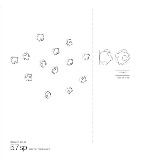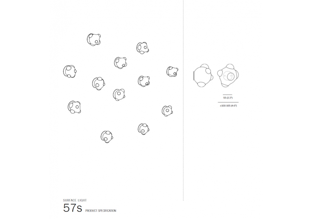57 von Omer Arbel für Bocci entworfen, ist eine Wandleuchte mit handgefertigtem Glasdiffusor und erhältlich in grau und opalweiß, mit LED-Lichtquelle. Die strukturelle Stütze besteht aus Metall. 57 ist in zwei verschiedenen Versionen 57s und 57sp erhältlich. der 57s wird nicht direkt an das Stromnetz angeschlossen, sondern über ein Netzteil; während der 57sp über ein integriertes Netzteil verfügt und direkt an das Stromnetz angeschlossen werden kann.