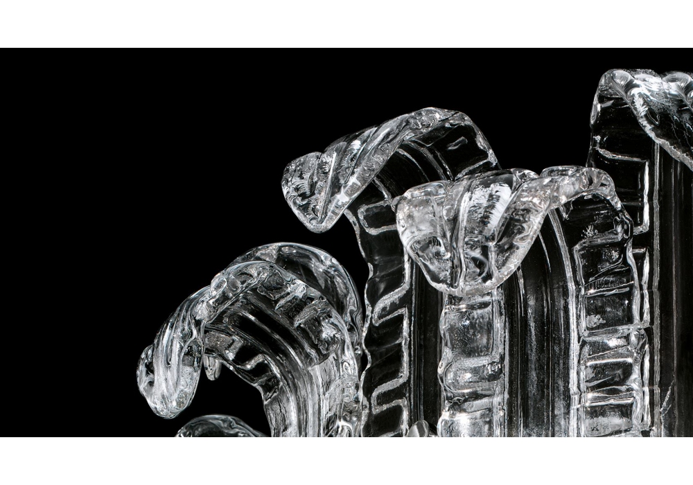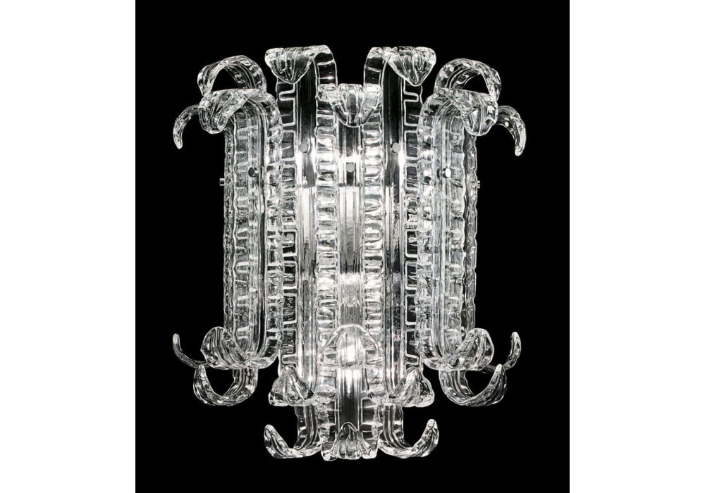 New Felci entworfen und hergestellt von Barovier & Toso ist eine Wandleuchte mit tragender Struktur und Dekorationen aus poliertem Chrom oder verzinktem goldfarbenem Metall. Der Diffusor ist durch mehrere Applikationen aus transparentem venezianischem Kristall und bildschirmdimmbaren LED oder Halogenlichtquellen strukturiert. New Felci ist in verschiedenen Modellen und Ausführungen erhältlich.
