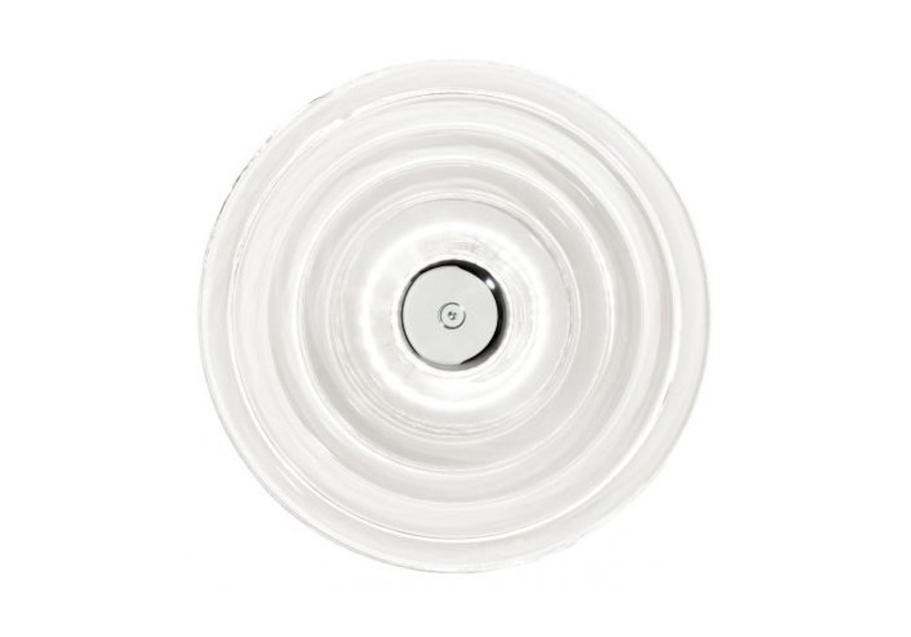 Press Surface von Tom Dixon entworfen, ist eine Wandleuchte aus dickem und transparentem Glas mit einem abgerundeten linearen Oberflächendetail.