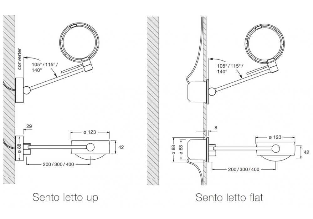 Sento Letto von Occhio entworfen, ist eine LED Wandleuchte aus Aluminium, Kunststoff, Glas und optischem Kunststoff mit flachem Fuß zur Montage auf Unterflurdose oder hohem Fuß mit mitgeliefertem Netzteil. Dimmbar über "touchless control“ oder über Occhio air. Verfügbar in mehreren Ausführungen, Abmessungen und Modellen.