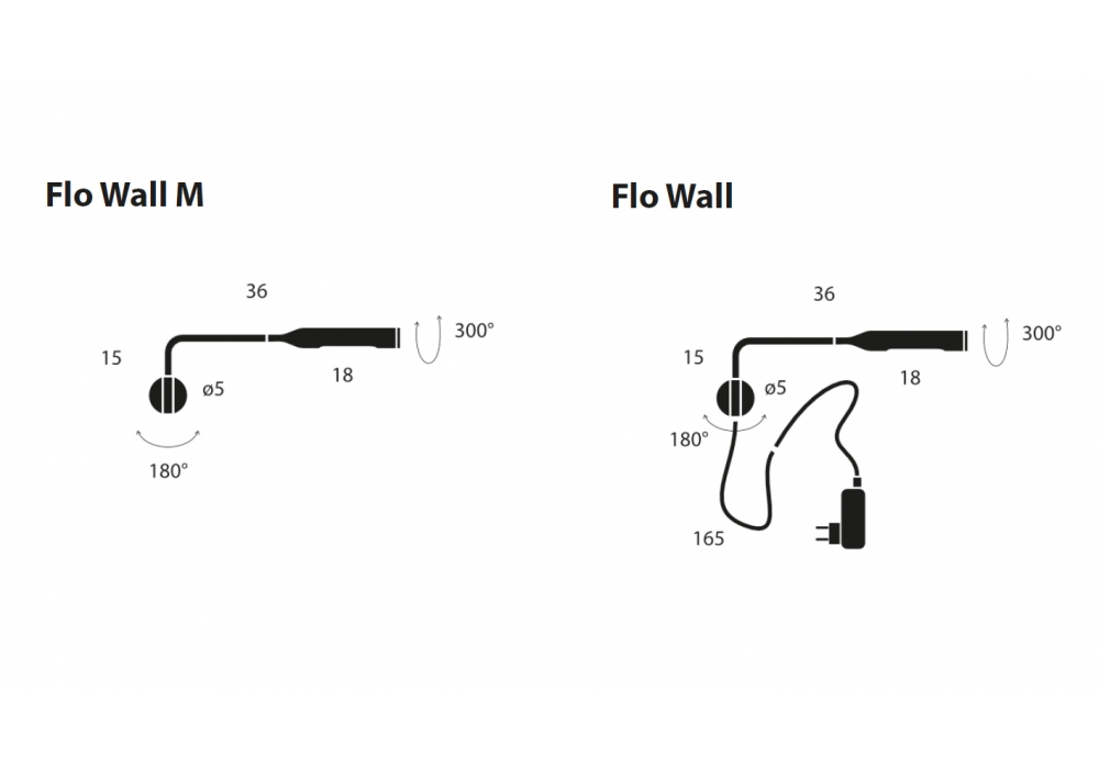 Flo, von Foster + Partners für Lumina entworfen, ist eine Wandleuchte mit Halterung und Struktur aus lackiertem Aluminium in verschiedenen Ausführungen. Der Arm ist in einer horizontalen Linie von 120 ° verstellbar und nimmt einen Diffusor mit vertikaler Drehung von 300 ° an. Die Lichtquelle ist eine LED mit einem zweistufigen Intensitätsschalter. Flo ist in zwei verschiedenen Versionen erhältlich; Flo Wall mit Steckdose oder Flo Wall M mit direkter Stromversorgung.