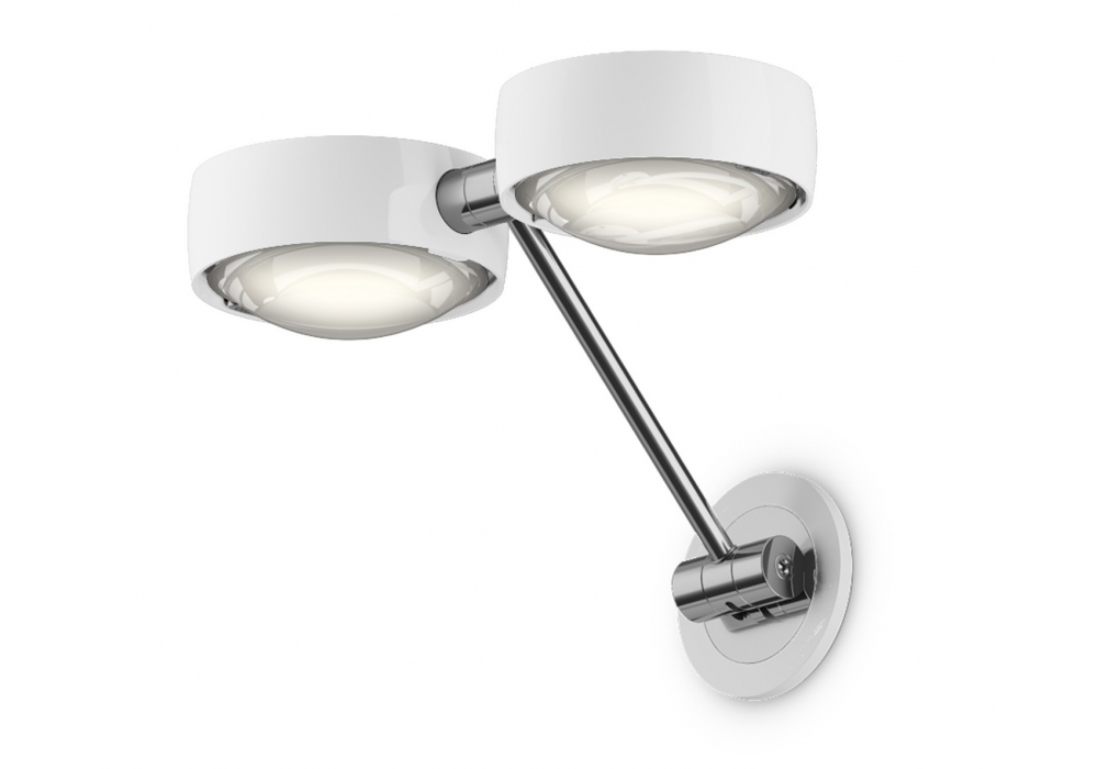 Sento Doppio von Occhio entworfen, ist eine LED Wandleuchte aus Aluminium, Kunststoff, Glas und optischem Kunststoff mit flachem Fuß zur Montage auf Unterflurdose oder hohem Fuß mit mitgeliefertem Netzteil. Dimmbar über "touchless control“ oder über Occhio air. Verfügbar in mehreren Ausführungen, Abmessungen und Modellen.