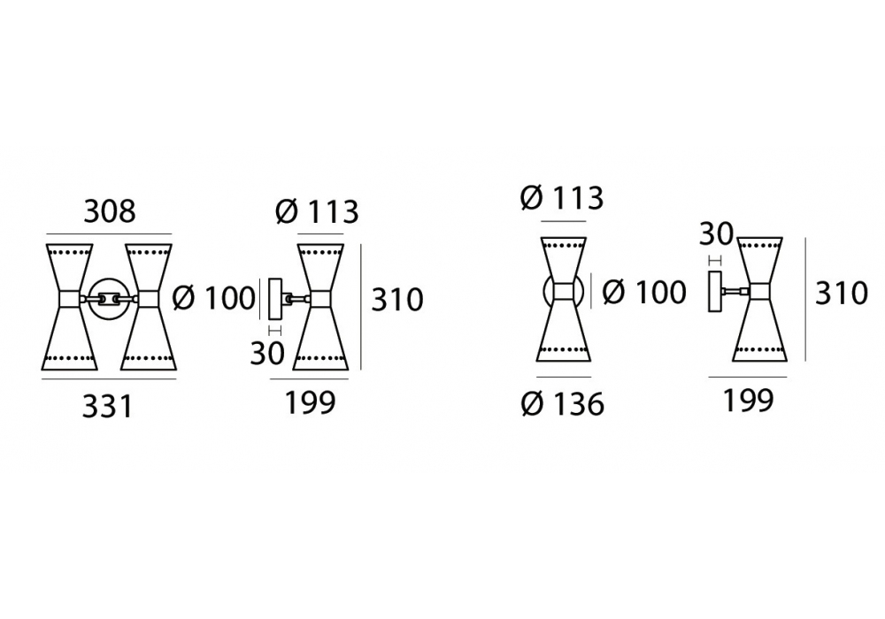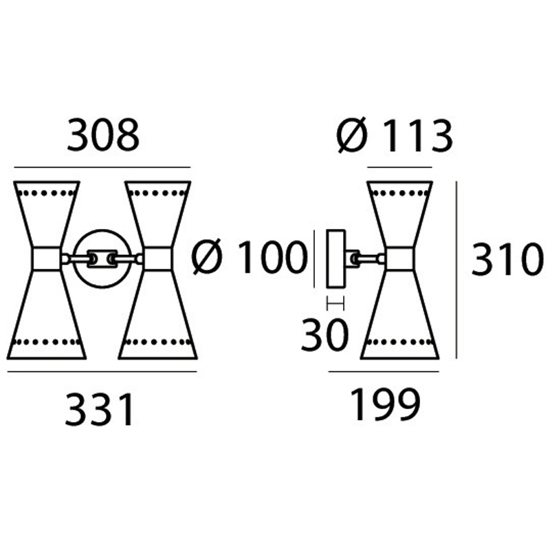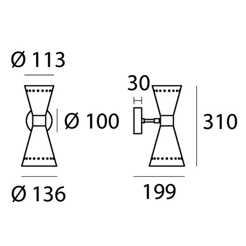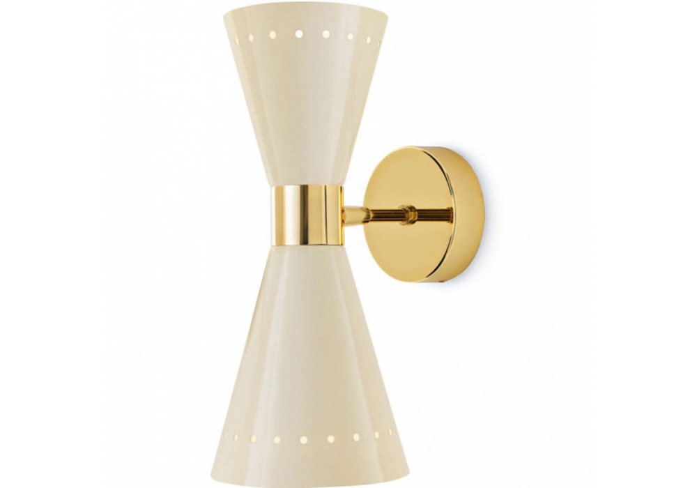 Megafono entworfen und hergestellt von Stilnovo ist eine LED Wandleuchte mit einem goldfarbenen Körper aus galvanisiertem Messing in zwei Ausführungen: Gold-Schwarz und Gold-Elfenbein. Der Diffusor ist konisch aus Metall und nimmt eine LED-Lichtquelle mit doppelter Emission auf. Megafono ist in Einzel- oder Doppelversion erhältlich.