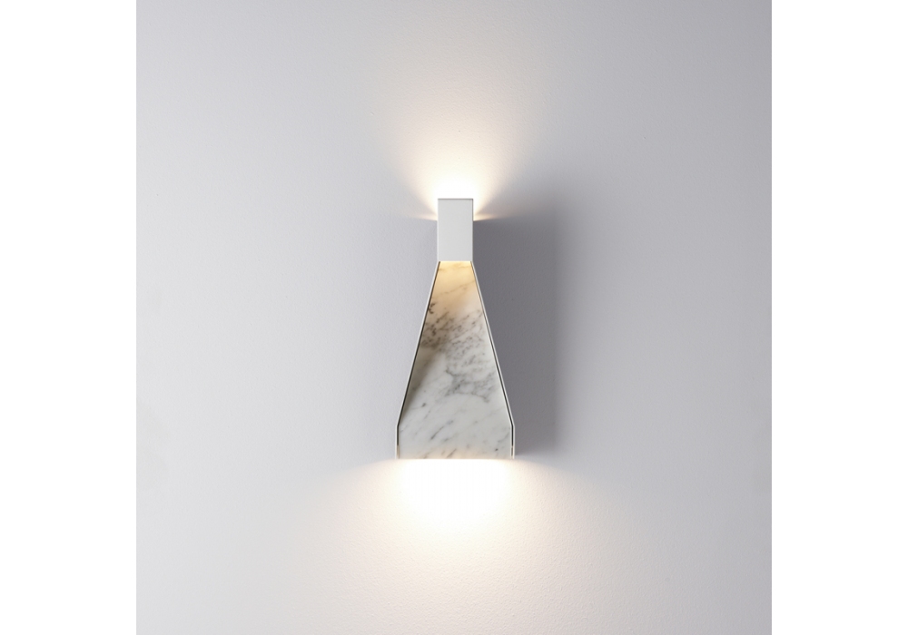 Standley von Jon Goulder für Rakumba entworfen, ist eine Wandleuchte aus Stahl in verschiedenen Ausführungen oder Marmor.