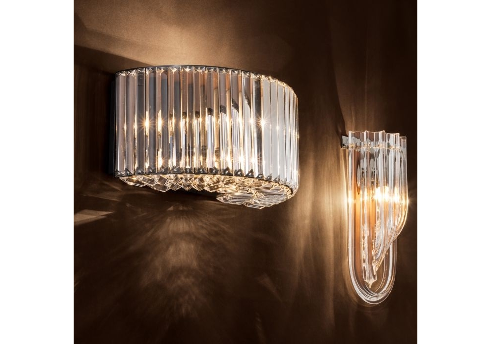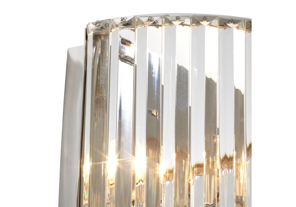 Wall Lamp Infinity von Eichholtz entworfen, ist eine Wandleuchte mit halbkreisförmigem Lampenschirm aus Kristallstäben, die ein weiches und warmes Licht abgeben.