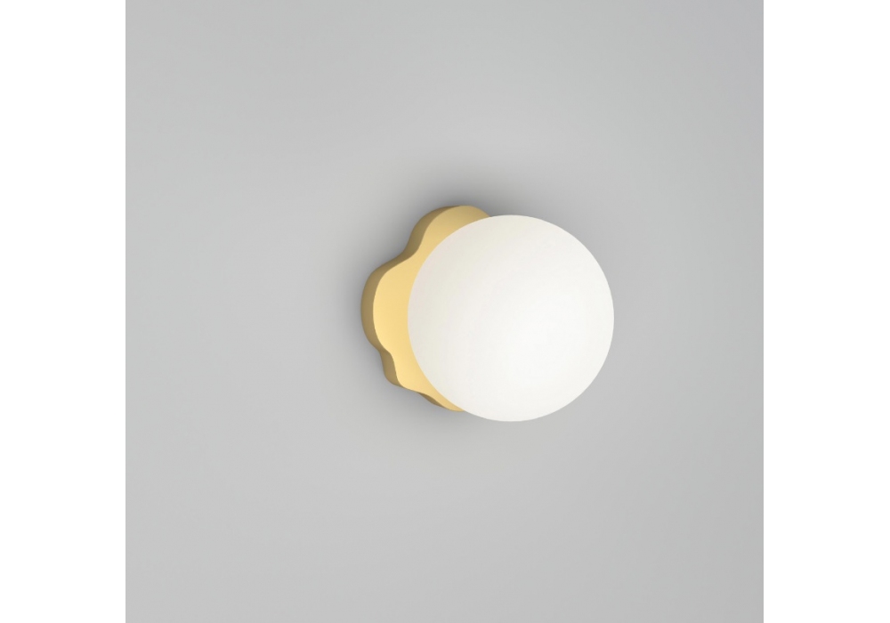 Block von Atelier Areti entworfen, ist eine Wandleuchte aus gebürstetem Messing, Aluminium oder lackiert. Diffusor aus weißem Glas. Erhältlich in verschiedenen Modellen.