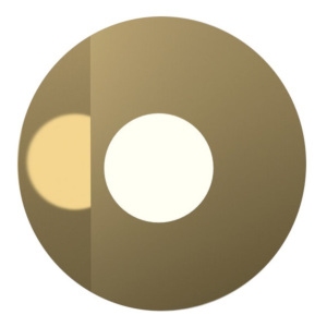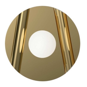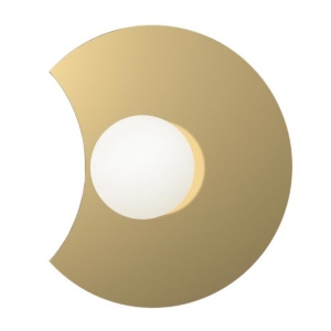 Disc and Sphere Intersecting/Bent von Atelier Areti entworfen, ist eine Wandleuchte aus poliertem Messing, Angriff aus weiß oder schwarz lackiertem Metall und weißem Glasdiffusor. Erhältlich in verschiedenen Modellen.