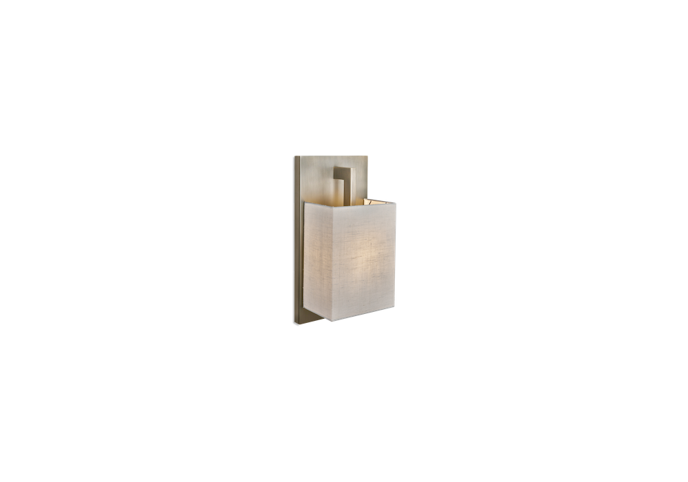 Coconette entworfen von Tristan Auer & Frédéric Sicard für Contardi ist eine Wandleuchte mit einer Struktur aus matt hell gebürstetem Bronzemetall. Der Lampenschirm besteht aus weißer Baumwolle und schirmt ein Leuchtmittel mit einer LED-Fassung vom Typ E27 ab.