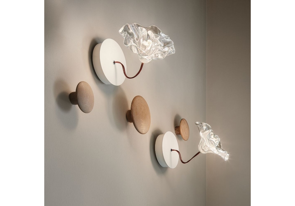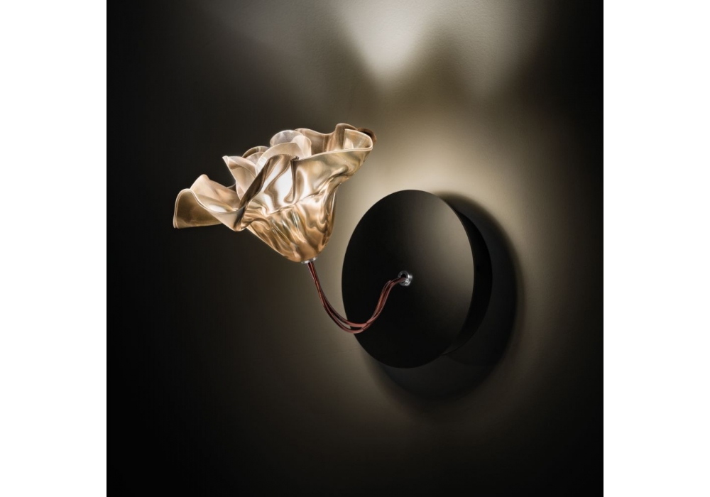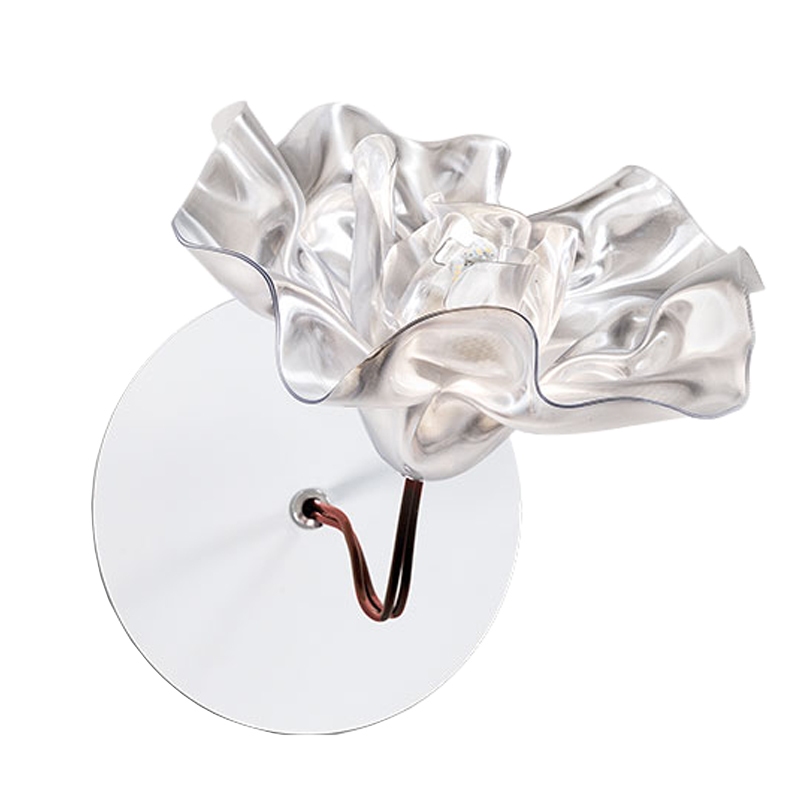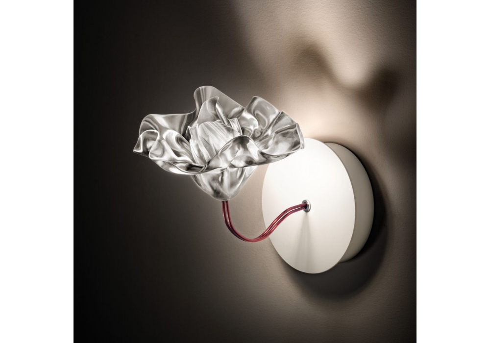 Lafleur von Marc Sadler für Slamp entworfen ist eine Wandleuchte mit Struktur aus Kupfer und lackiertem Metall. Der Diffusor besteht aus Lentiflex®, das durch die Modellierung des Kunststoffmaterials die Form einer Blume annimmt. Die verwendete Lichtquelle ist vom dimmbaren LED-Typ. Lafleur ist in verschiedenen Ausführungen erhältlich.