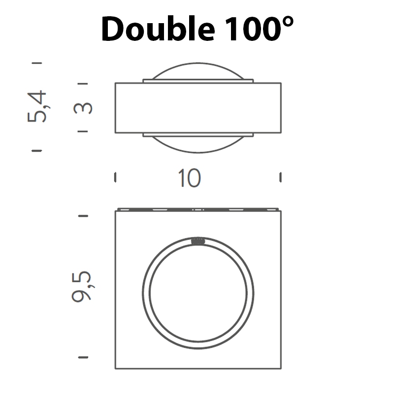 | Abmessungen | 9,5 x 9,5 x H 3 cm; (double) 9,5 x 5,4 x H 3 cm. (double 100°) |