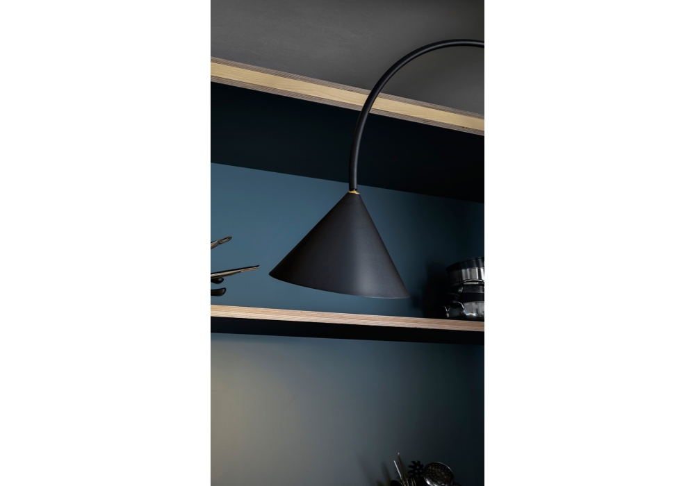 Ozz von Paolo Cappello & Simone Sabatti für Miniforms entworfen, ist eine Wandleuchte aus schwarzem Metall. Verstellbare Parabel und Lampenschirm.