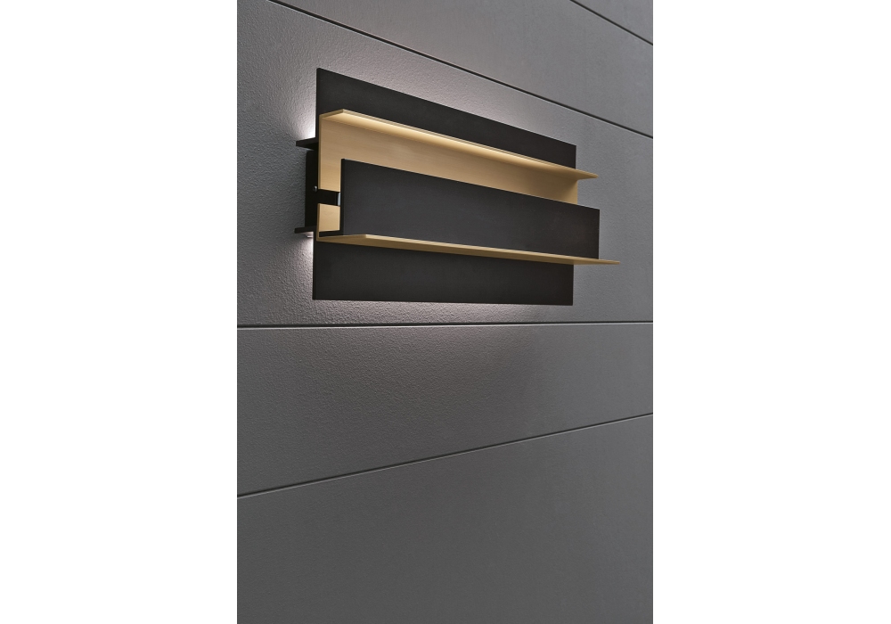 Secret von Massimo Tonetto für Venicem entworfen, ist eine Wandleuchte mit indirektem Licht. Struktur aus leicht brüniertem Messing und mattem Schwarz.