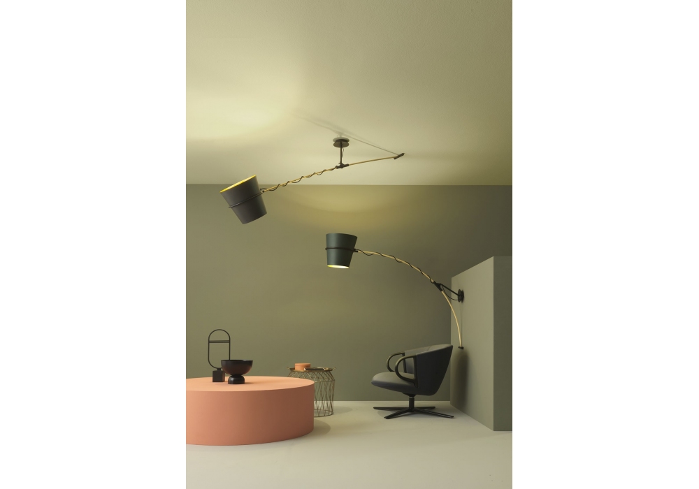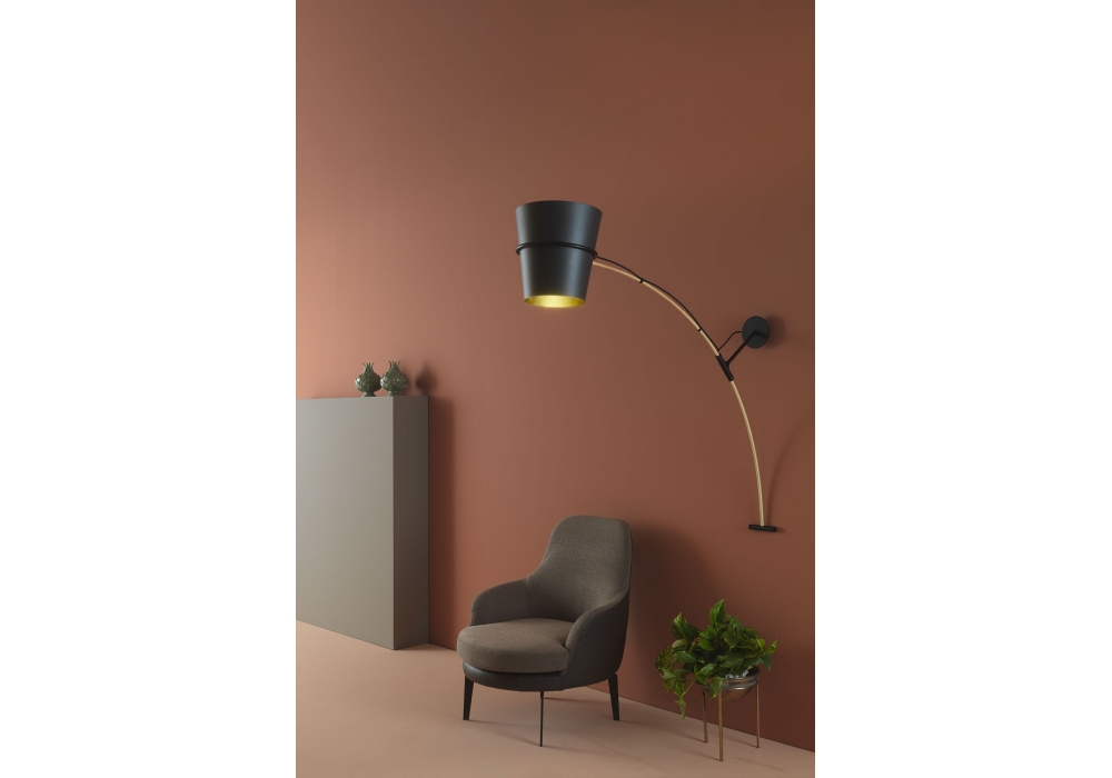Nefertari von Lorenzo Palmeri für Zava entworfen, ist eine Wandleuchte aus Eisen, Messing und Aluminium. Verfügbar in verschiedenen matten Oberflächen.