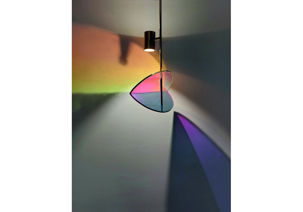 Polaris von Ombre Portée entworfen, ist eine Wandleuchte aus gebürstetem Messing und Plexiglas.