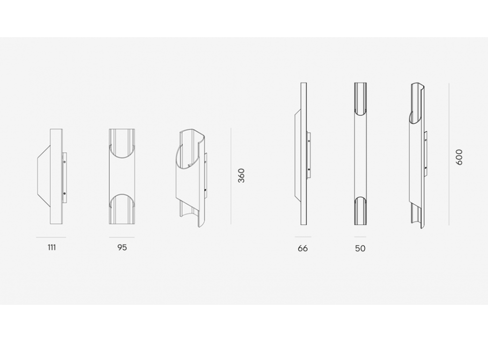 | Abmessungen | Wall 95: 9,5 x 11,1x H 36 cm; Wall 50: 6,6 x 5 x H 60 cm. |
