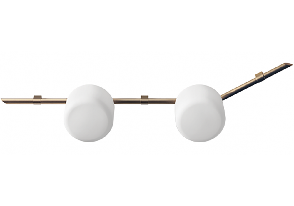 Floed 2, von Storagemilano für Kundalini entworfen, ist eine Wandleuchte/Deckenleuchte mit Diffusoren aus mundgeblasenem Opalglas und lackierter Metallstruktur mit Bronze-Finish.