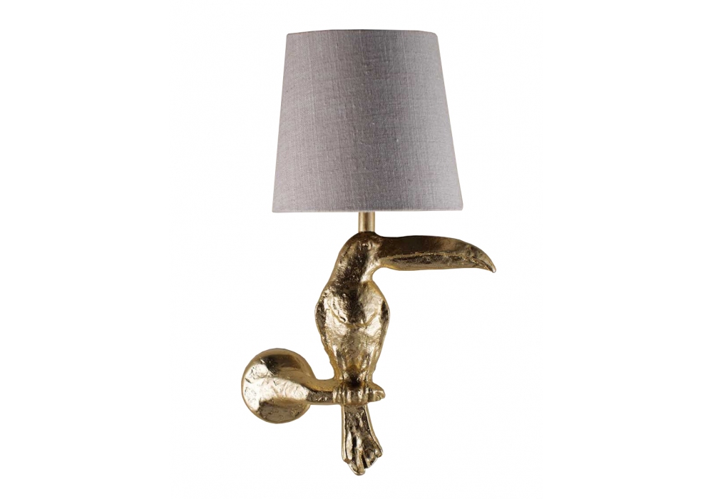 Toucan hergestellt und entworfen von Porta Romana, ist eine Wandleuchte mit tragender Struktur aus Jesmonit und lackiertem Messing. Der Lampenschirm ist kreisförmig aus Stoff und schirmt eine Lichtquelle mit einer E14-Fassung vom Typ LED ab. Toucan ist sowohl in Rechts- als auch in Linksversion und in verschiedenen Ausführungen erhältlich.