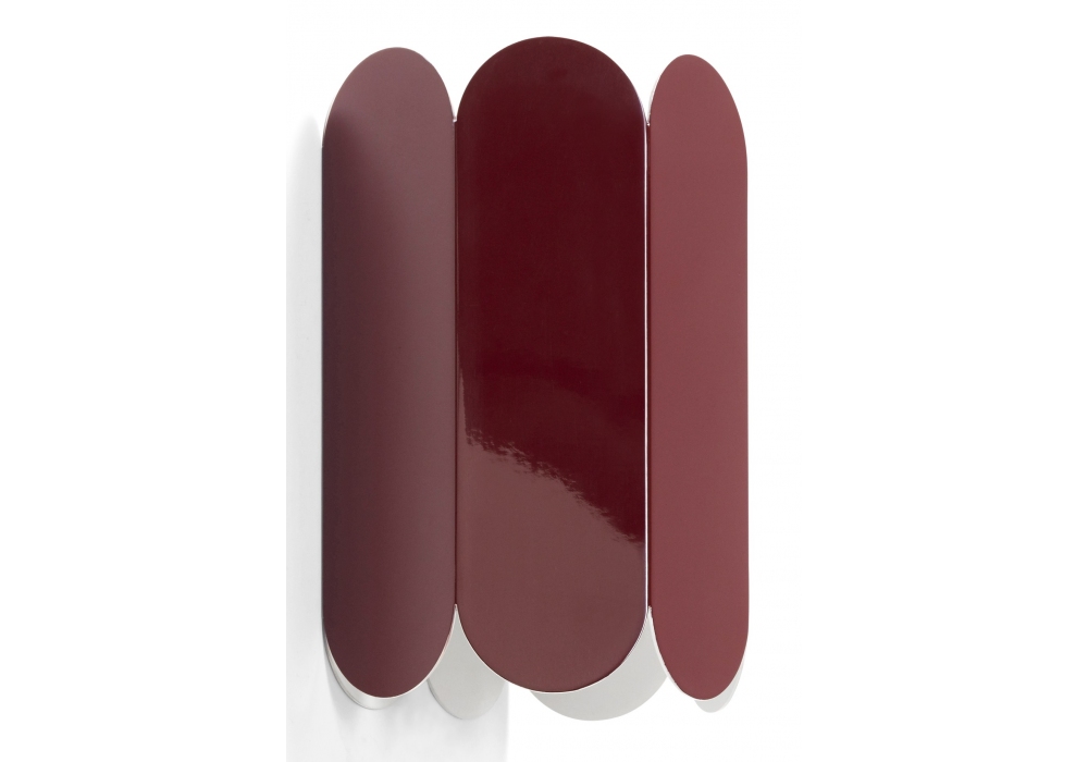 ARCS Sconce von Muller Van Severen für Hay entworfen, ist eine Wandleuchte aus gepresstem und gebogenem Stahlblech mit polierter oder hochglanzpolierter Oberfläche und Wandkastenverbindung aus weißem Blech mit Nasseffekt-Finish. Verfügbar in verschiedenen Ausführungen.