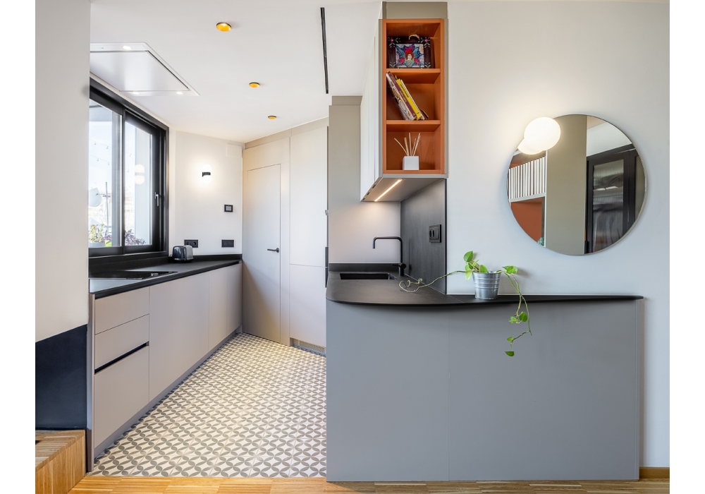 Circ von Nahtrang Studio für Estiluz entworfen, ist ein runder Spiegel mit eingebauter Wandlampe. Der Diffusor wird durch eine Halbkugel aus durchscheinendem beigefarbenem Polyethylen mit integrierter LED-Lichtquelle mit Triac-Dimmersystem strukturiert. Circ ist in verschiedenen Ausführungen erhältlich.