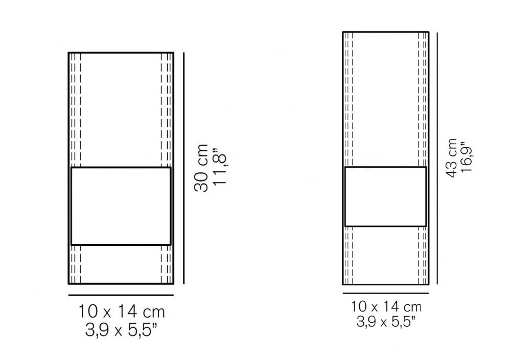 | Abmessungen | 10 x 14 x H 30 cm; 10 x 14 x H 43 cm. |