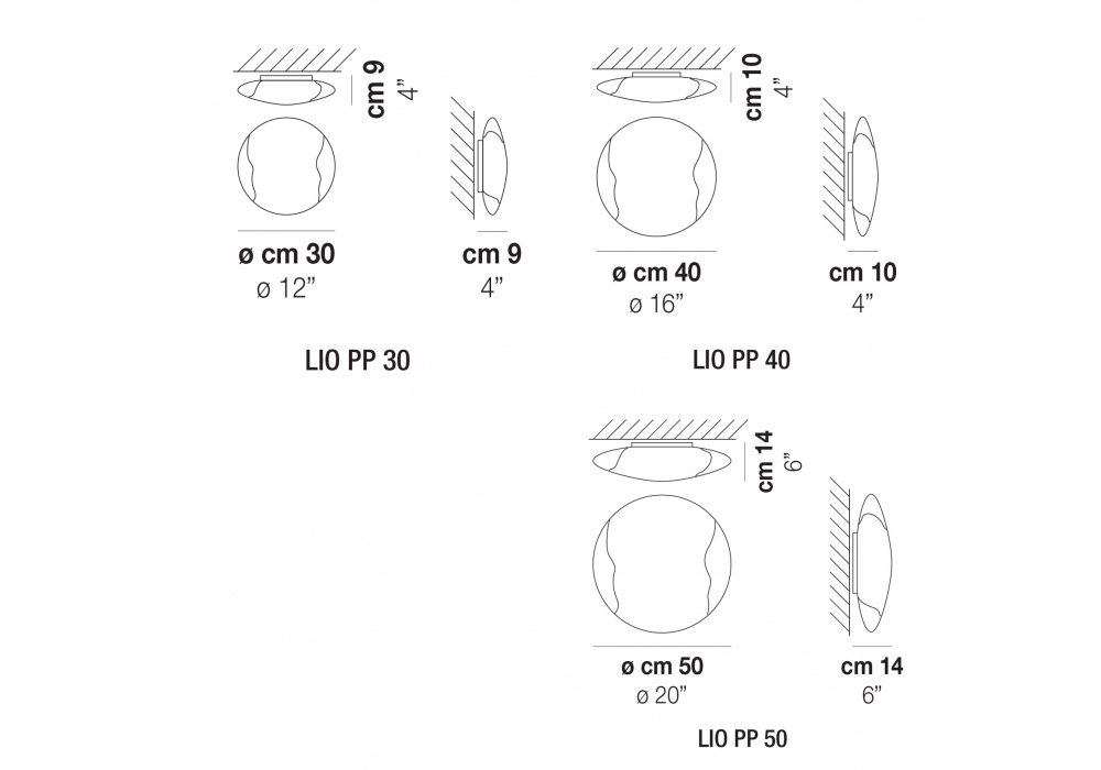 | Abmessungen | Ø 30 x H 9 cm; Ø 40 x H 10 cm; Ø 50 x H 14 cm. |