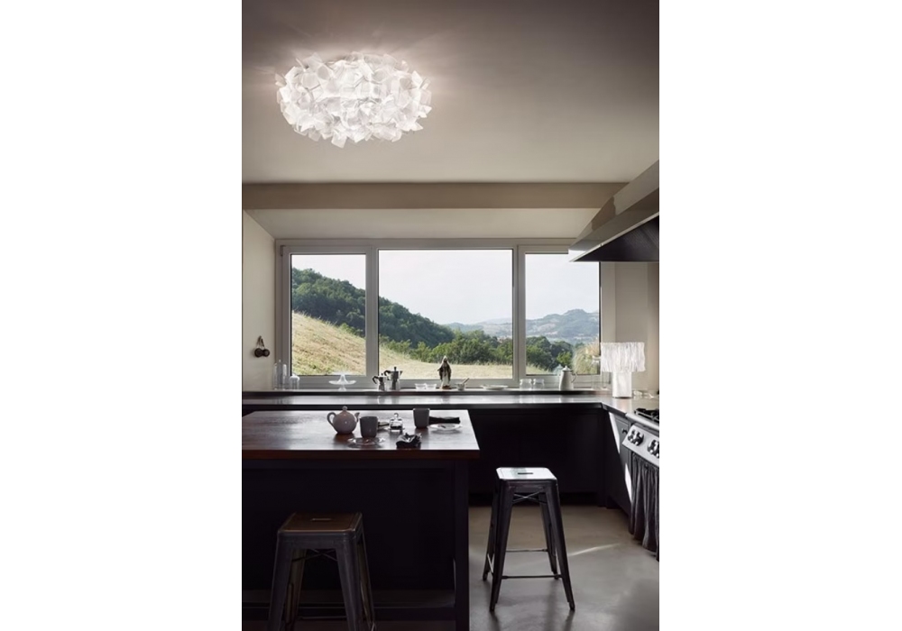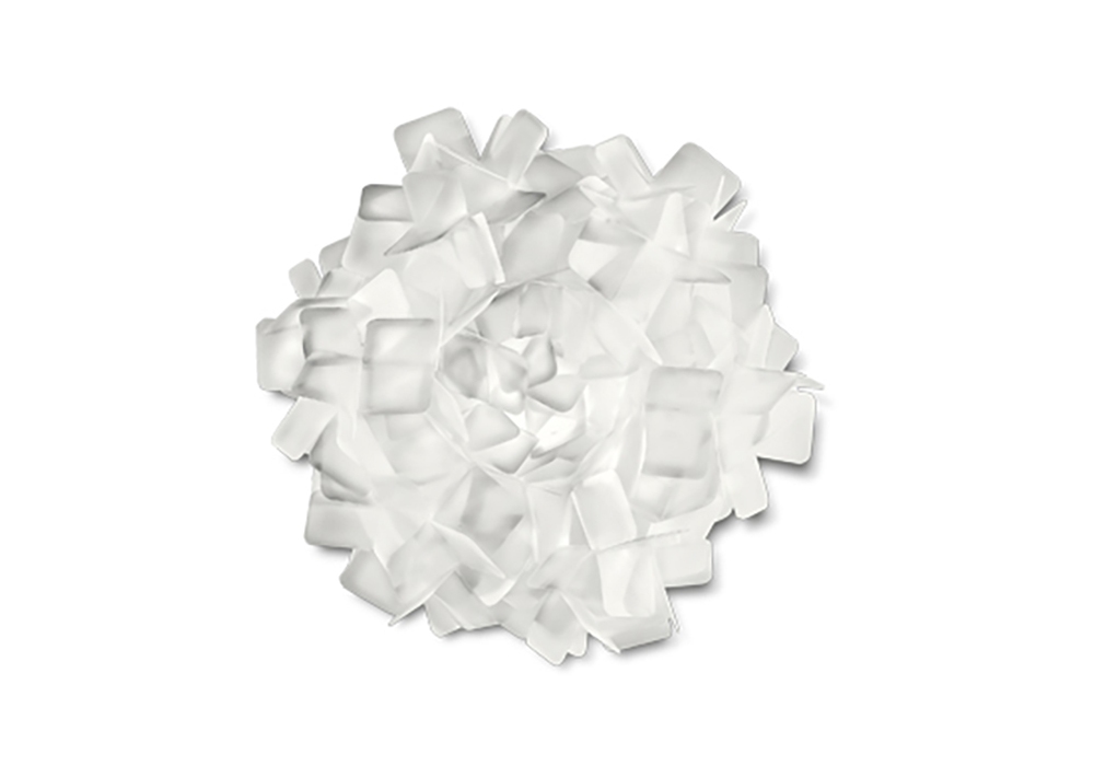 Clizia Small von Adriano Rachele für Slamp entworfen ist eine Wand oder Deckenleuchte mit abstrakter Form aus Opalflex®; Cristalflex® oder Lentiflex®. Bei der verwendeten Lichtquelle handelt es sich um eine dimmbare Glühfaden LED. Clizia Small ist in drei verschiedenen Größen erhältlich.