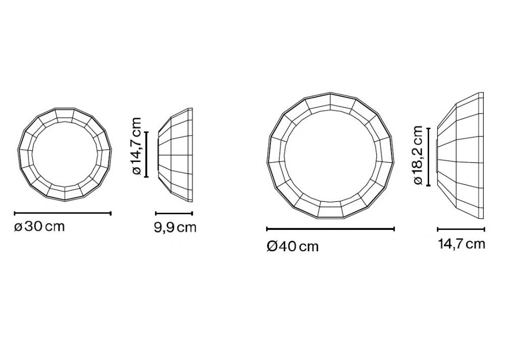 | Leuchtmittel | • 2x G9 LED 2,2W (Ø 30 cm); • 2x E27 LED 8W (Ø 40 cm) |