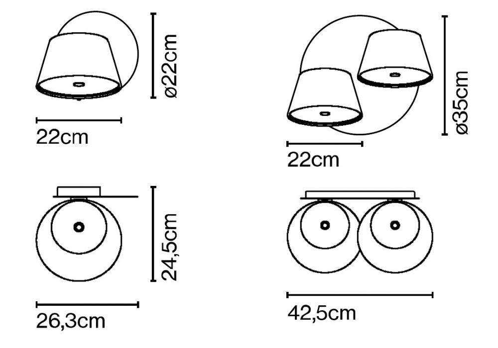 | Abmessungen | • 26,3 x 24,5 x H 22 cm; • 42,5 x 24,5 x H 35 cm |