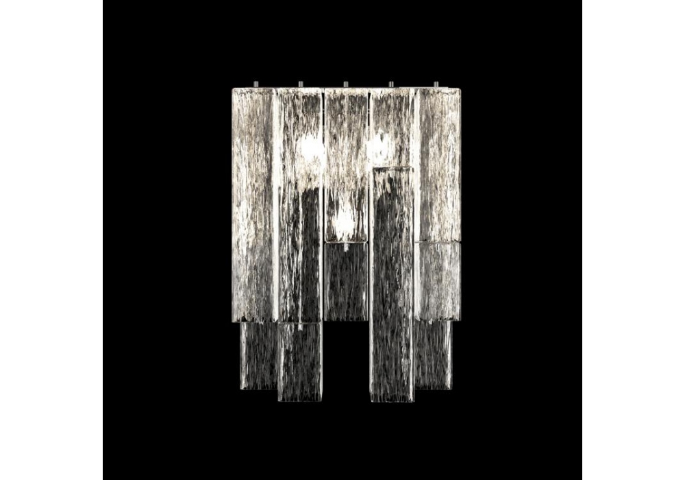 Empire entworfen und hergestellt von Barovier & Toso ist eine Wandleuchte mit tragender Struktur und Details aus poliertem Chrom oder verzinktem goldfarbenem Metall. Der Diffusor besteht aus mehreren nebeneinander angeordneten viereckigen Elementen und bildschirmdimmbaren LED- oder Halogenlichtquellen. Empire ist in verschiedenen Ausführungen erhältlich.