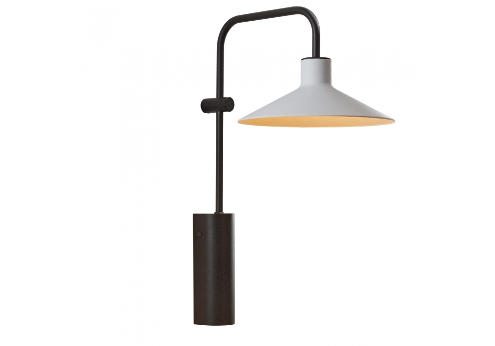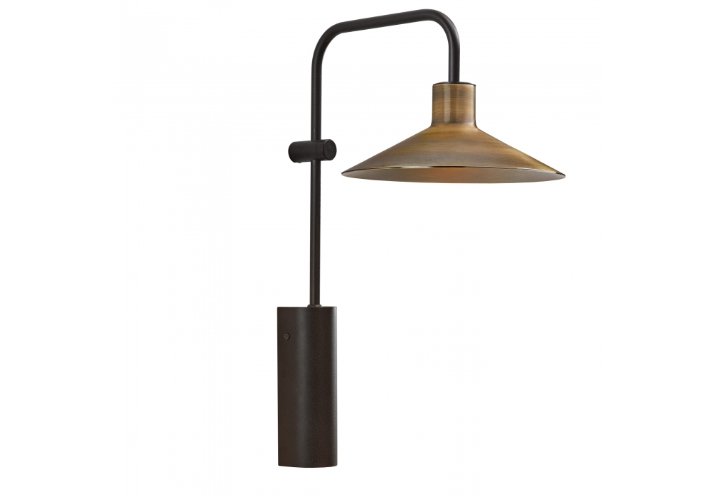 Platet 2 von Christophe Mathieu für Bover entworfen ist eine Außenwandleuchte mit Stütze und tragender Struktur aus lackiertem Aluminium, Messing und Eisen. Der Lampenschirm hat eine abgerundete Form und schirmt eine LED-Lichtquelle ab. Platet 2 ist in verschiedenen Lampenschirmausführungen und -ausführungen erhältlich.