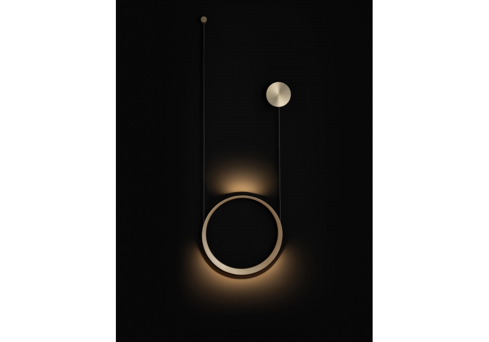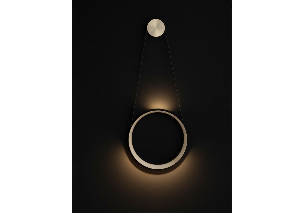 Moonlight von Hoffmann Kahleyss für Quasar entworfen ist eine Wandleuchte mit zylindrischer Wandhalterung aus Metall. Der Lampenkörper wird durch ein Lederband strukturiert, das um einen runden Metallkörper gewickelt ist, der in verschiedenen Ausführungen erhältlich ist. Bei den verwendeten Lichtquellen handelt es sich um LED-Streifen, die im äußeren Umfangsteil des kreisförmigen Metallkörpers positioniert sind. Moonlight ist in verschiedenen Modellen erhältlich.