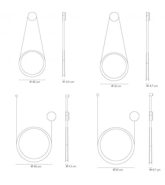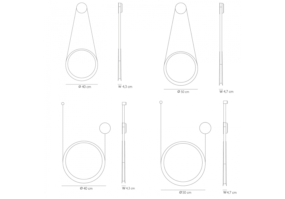 | Abmessungen | L Ø 40 x W 4,3 H 40 cm; L Ø 50 x W 4,7 H 50 cm; L Ø 40 x W 4,3 H 40 cm; L Ø 50 x W 4,7 H 50 cm. |