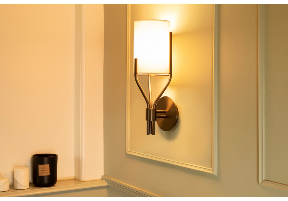Arborescence von Hervé Langlais für CVL Luminaires entworfen, ist eine Wandleuchte mit Stofflampenschirm und satinierter oder polierter Struktur aus massivem Messing. Verfügbar in mehreren Ausführungen und Abmessungen.