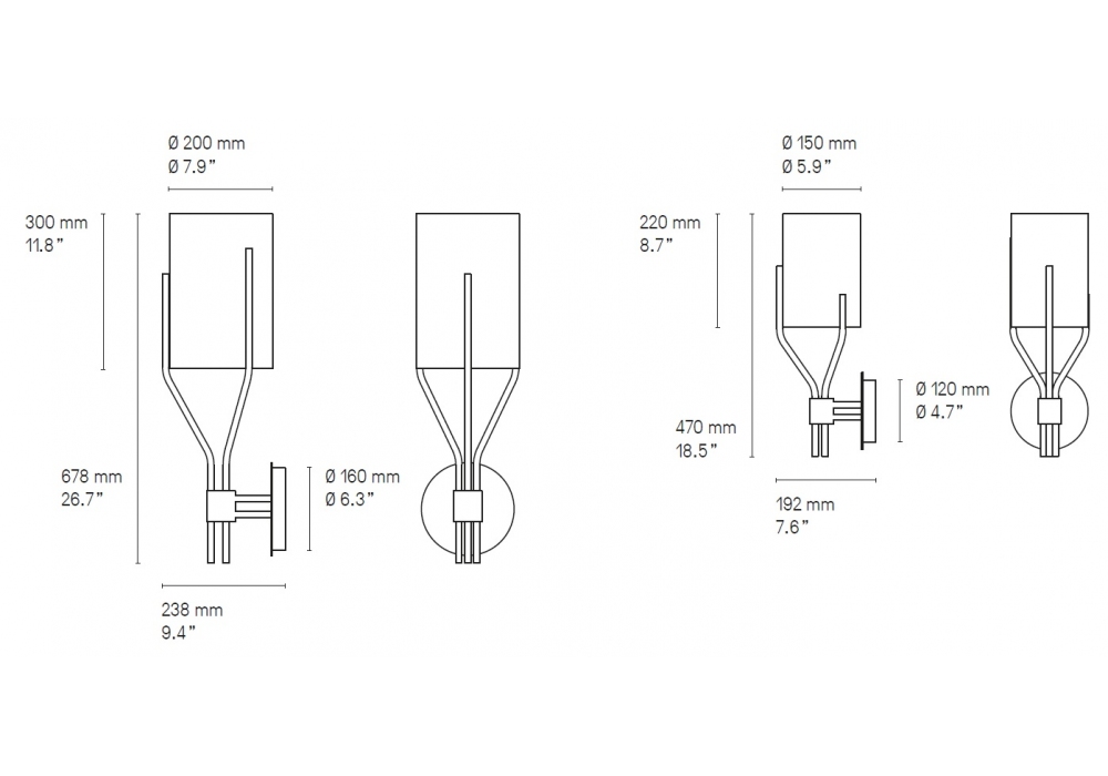 | Abmessungen | XS_ 15 x 19.2 x H 47 cm; XL_ 20 x 23.8 x H 67.8 cm. |