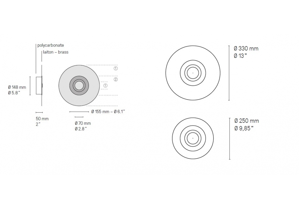 | Abmessungen | Ø 25 cm; Ø 33 cm. |